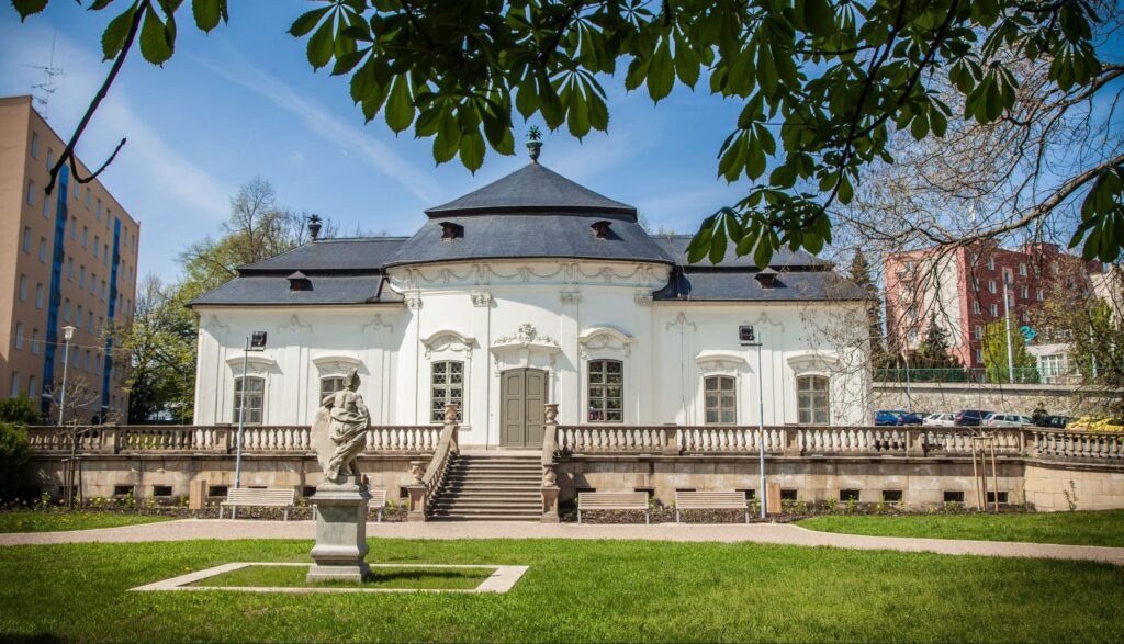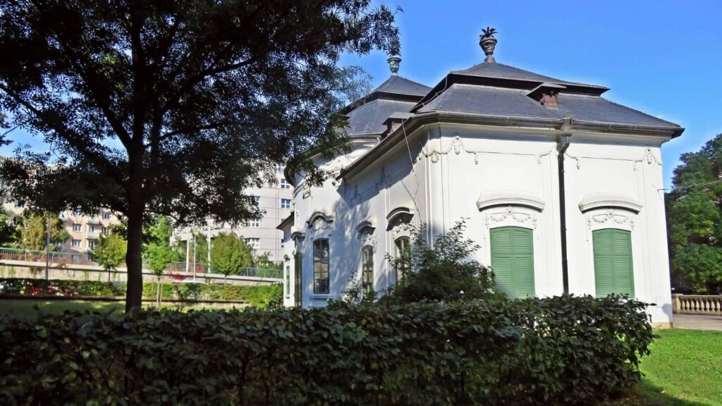 - A secluded frescoed pavilion nestled within a quiet little garden in the heart of Brno