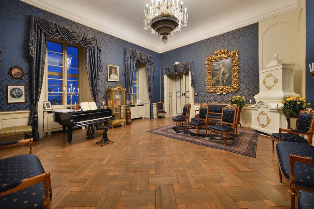 - Featuring a romantic piano salon, grand dining hall, a historic library, the Prince’s study, an oriental salon, and richly decorated interiors.