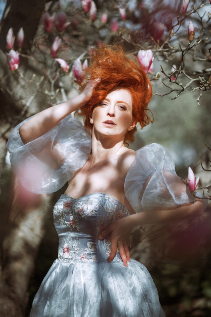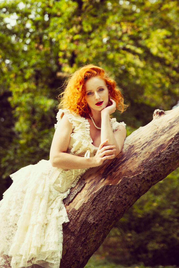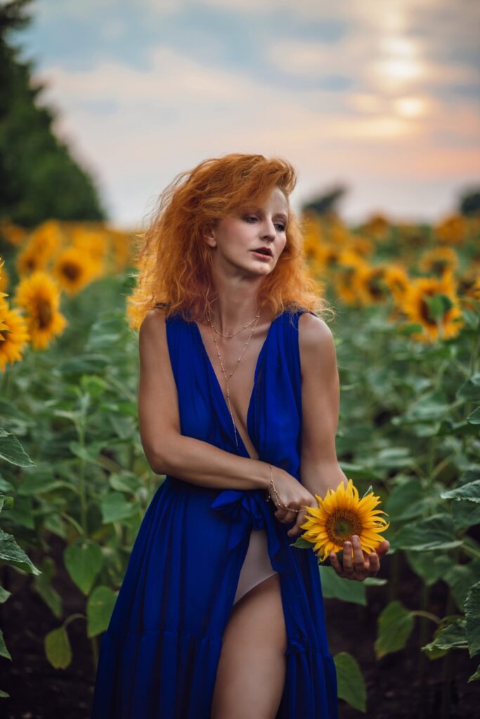 Hair color: ginger-blond, Eyes color: blue