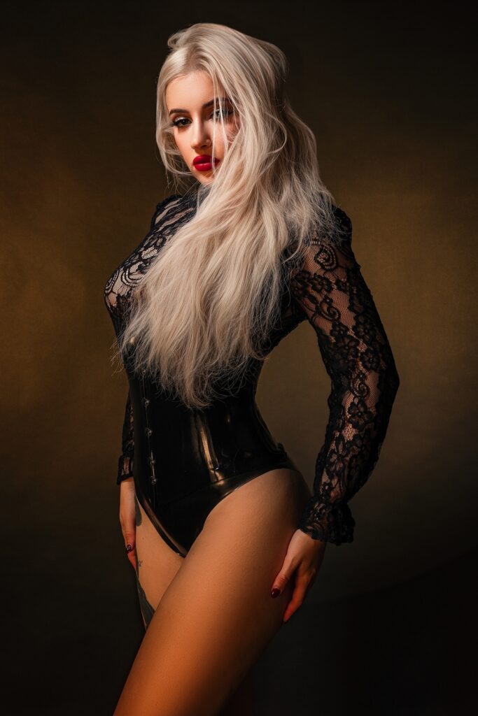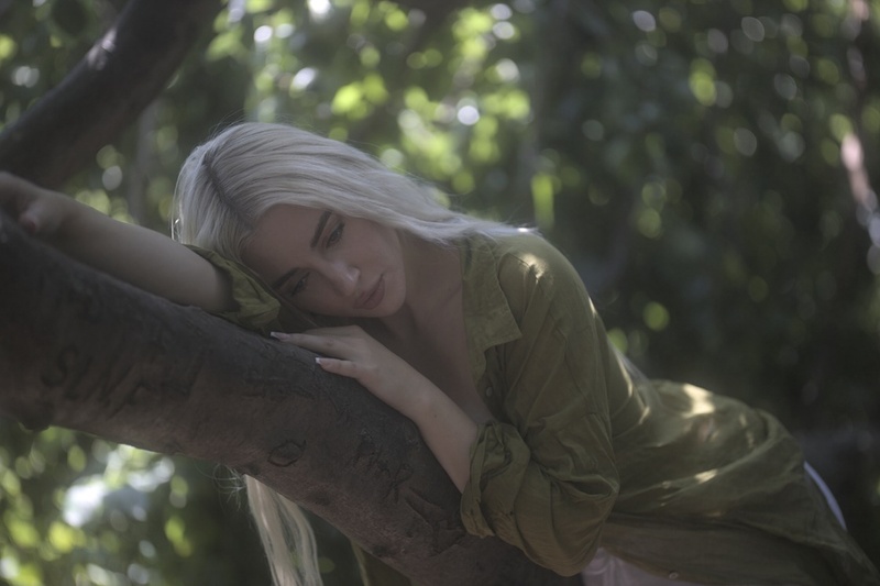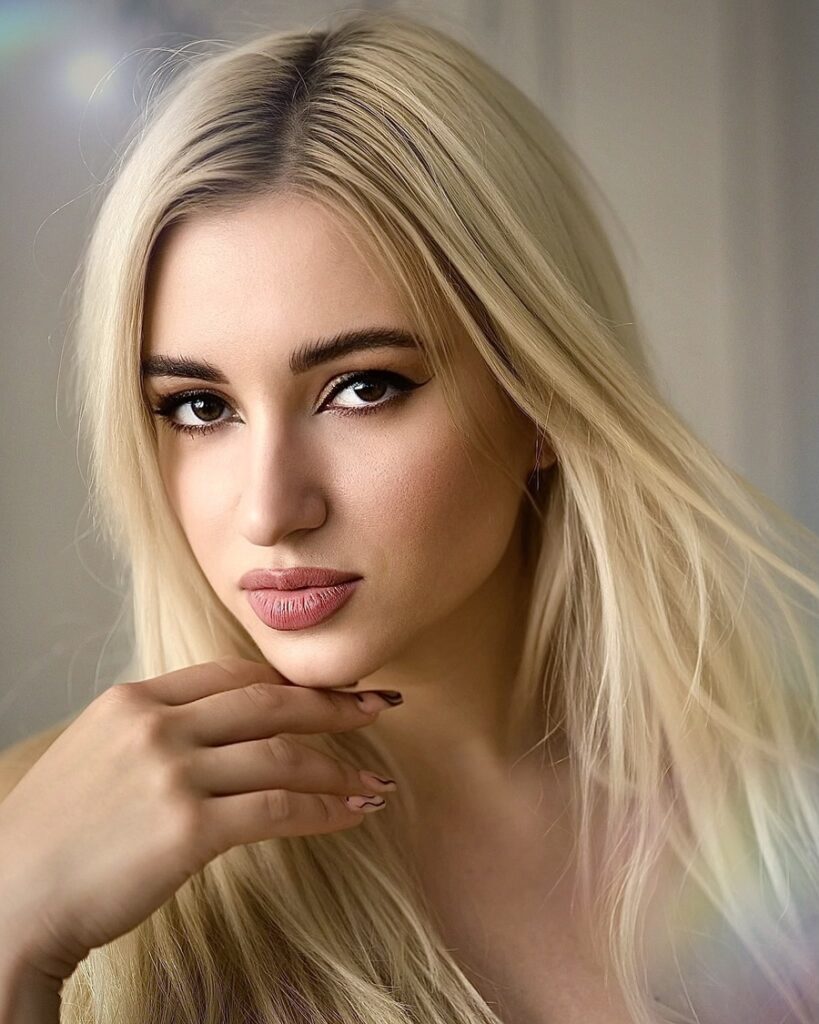 Hair color: blonde, Eyes color: brown